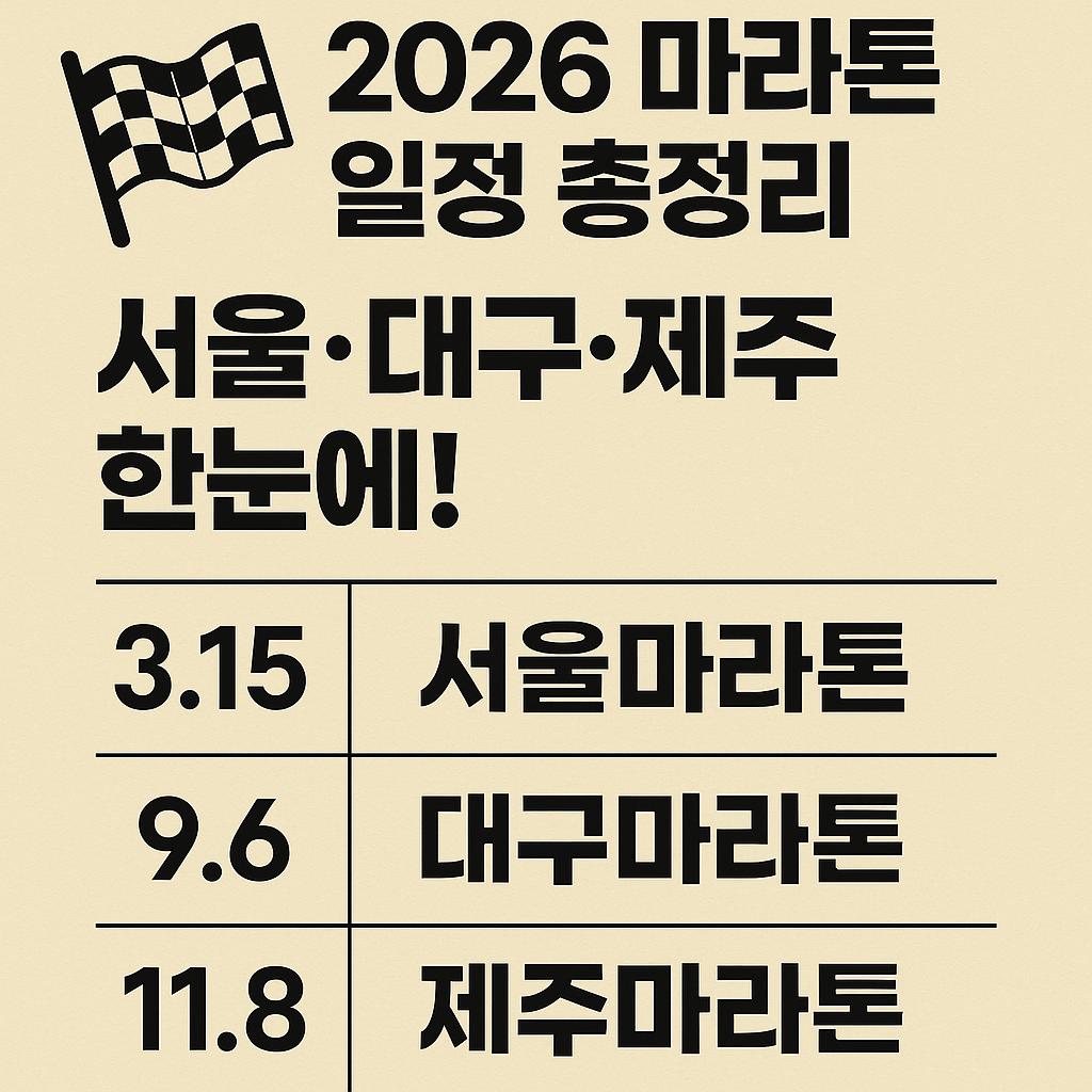 2026년 마라톤 시즌이 다가왔습니다! 올해는 서울·대구·제주를 포함한 국내 주요 도시에서 다양한 국제마라톤과 시민 러닝 이벤트가 열릴 예정인데요.